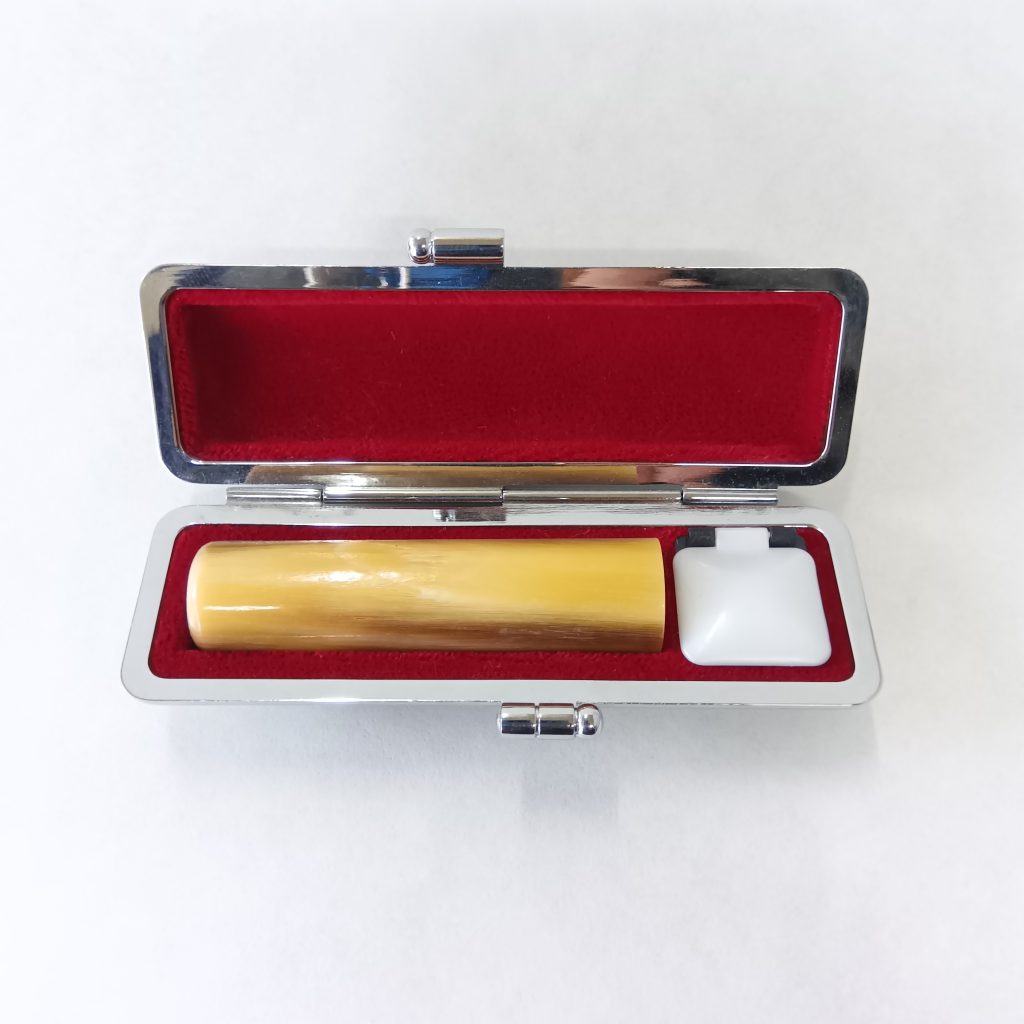 印材のおすすめは黒水牛か牛角です。粘りがあるので欠けにくく、朱肉の付が良いのと、ずっしり重いので押した感じが気持ちよいのです。