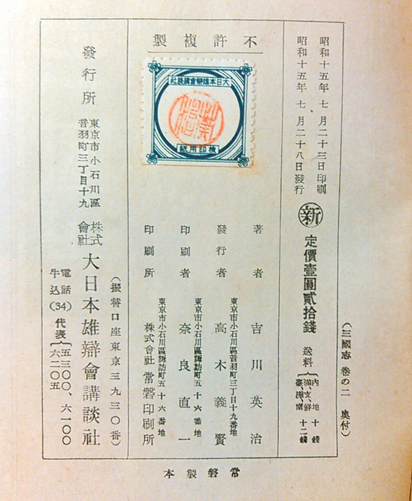 これは昭和15年発行の三國志に押されていたものです。